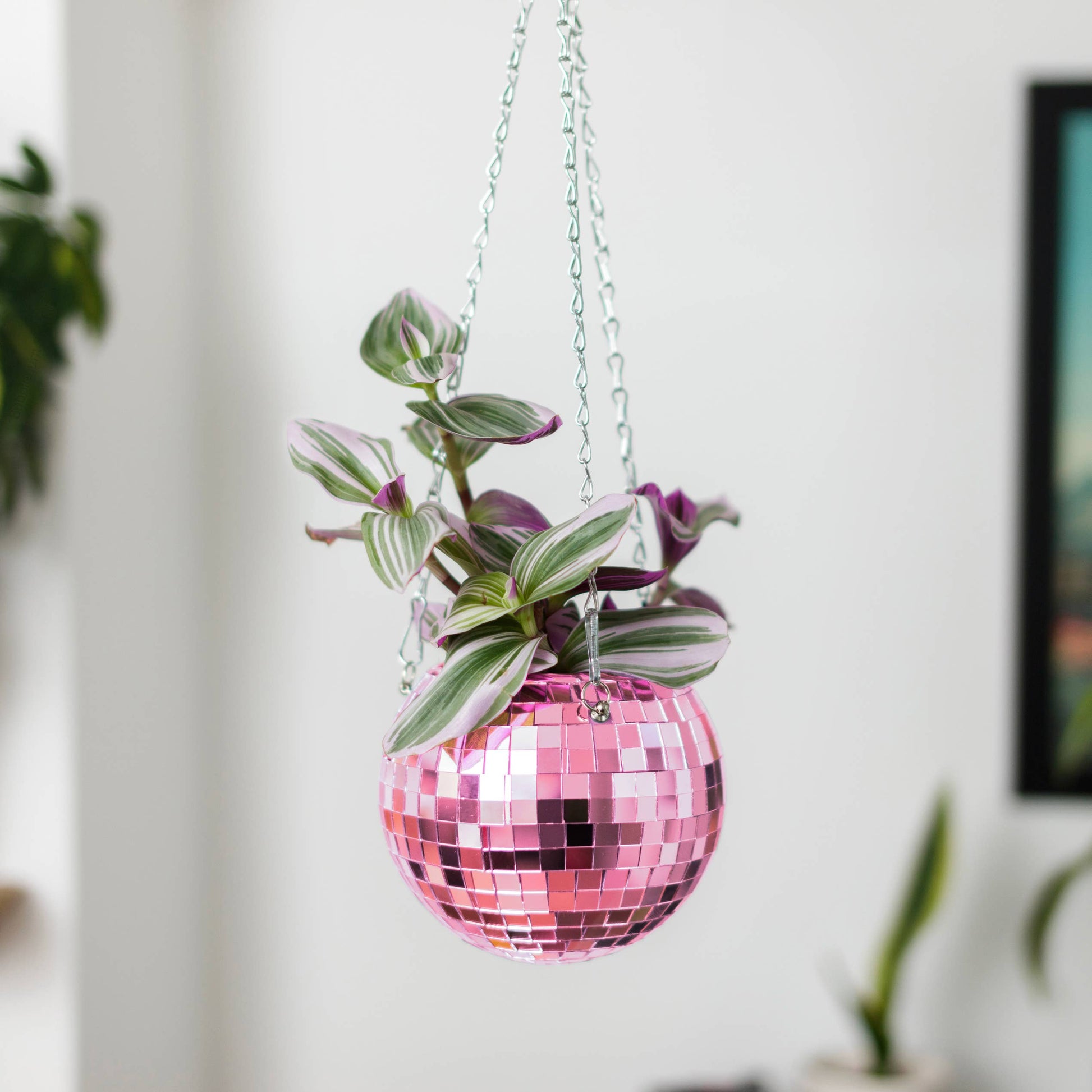 Disco Ball Hanging Planter - Pink (6in) 🪩